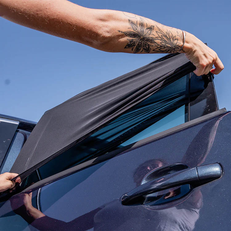 Auringonsuoja on valmistettu joustavasta ja rei'itetystä kankaasta, joka on helppo vetää yli auton ovea. Tämä tarkoittaa, ettet tarvitse työkaluja tai imukuppeja – se pysyy paikoillaan itsestään joustavan istuvuuden ansiosta.Erityisominaisuudet