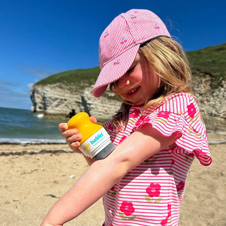 Solar Buddies perustettiin Kelli Asplandin ja Laura Watersin toimesta, jotta aurinkosuojan käyttö olisi helppoa ja hauskaa lapsille. Uudelleenkäytettävä applikaattori on valmistettu 94 % kierrätetystä muovista ja minimoi pakkausjätteen määrän. Brändi on saanut kansainvälistä huomiota muun muassa menestyksekkään esiintymisensä ansiosta Dragons’ Den -televisio-ohjelmassa.Tekniset tiedot