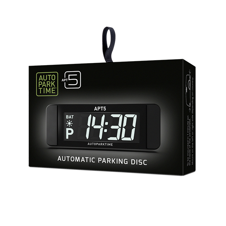 Autoparktime APT5 on kompakti ja huomaamaton automaattinen pysäköintikiekko, jossa on selkeä LCD-näyttö, joka asettaa oikean ajan puolestasi. Siinä on pitkä akunkesto jopa kolme vuotta ja se antaa selkeän varoituksen matalasta akkujen tasosta. Pysäköintikiekko säätää automaattisesti kesä- ja talviajan, ja se asennetaan nopeasti vain minuutissa kätevän itsekiristyvän magneettikiinnityksen avulla.