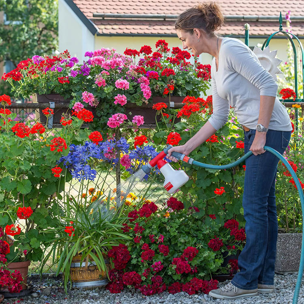Aquamix-lannoiteannostelija on arvokas lisä puutarhanhoitoon, halusitpa sitten parantaa kasvien kasvua, hallita sammaloitumista tai lisätä maaperään tärkeitä mikro-organismeja. Aquamixin avulla voit helposti valita neljästä sekoitusasetuksesta, joilla voit mukauttaa lannoitepitoisuuden kasviesi erityistarpeisiin. Asetukset on helppo säätää käden käänteessä 0,2 %, 0,5 %, 1 % ja 2 % välillä. Bokashi-annostelijassa on myös neutraali tila tavallista kastelua varten ilman bokashinestettä tai muuta lannoitetta.Tehokas puutarhan lannoitusratkaisu