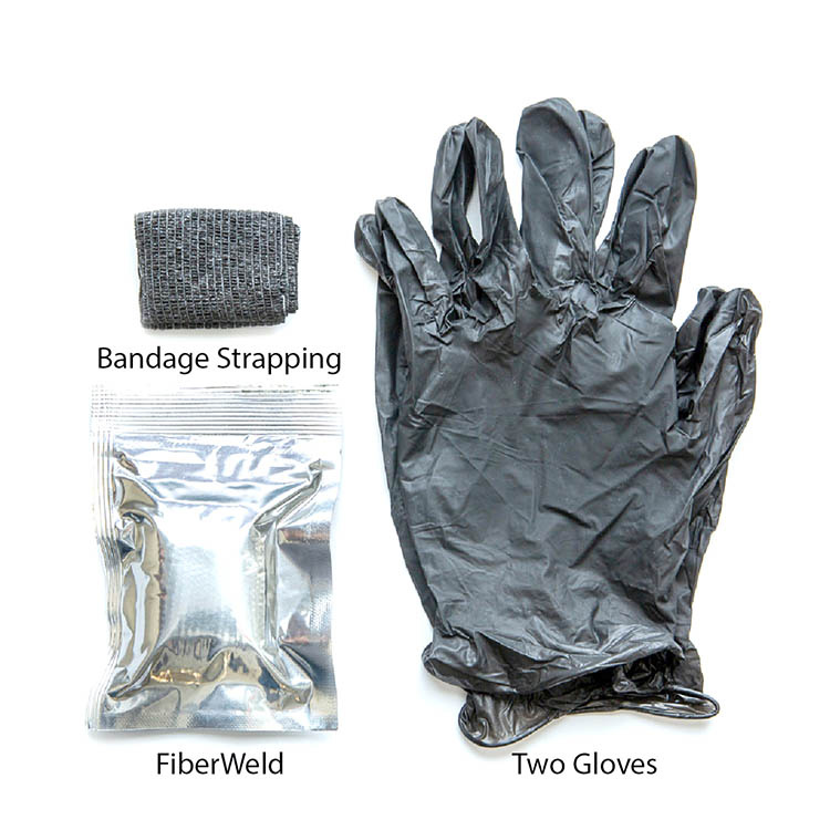 Sekä FiberWeld että FiberWeld Heat Wrap sisältävät korjaussetin, käsineet ja lasikuitukääreen, eli kaiken, mitä tarvitset korjauksen tekemiseen turvallisesti ja tehokkaasti ilman ylimääräisiä työkaluja tai materiaaleja.FiberWeld – Tee näin
