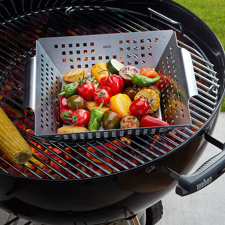 Grilliämpärin suorakulmaiset rei'itykset pohjassa ja sivuseinissä päästävät lämmön läpi tehokkaasti. Se takaa tasaisen kypsennyksen ja kauniin grillipinnan kaikelle, mitä laitat ämpäriin. Tuloksena on mehukkaita vihanneksia ihanalla paahtamisella.Täydellinen pienille raaka-aineille