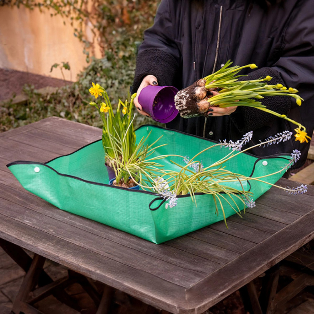 Käytännöllinen istutusalusta, joka tekee kaikenlaisten ruukkukasvien istuttamisesta puutarhassa helpompaa ja puhtaampaa. Istutusalusta toimii suojaavana esteenä kasvien ja pinnan välissä, mikä minimoi sekä roiskeiden että lian riskin.