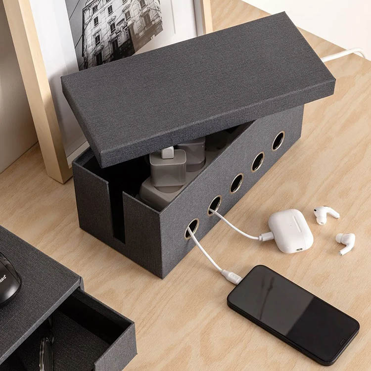 Käytännöllinen kaapelinhallintajärjestelmä, joka piilottaa tehokkaasti kaapelit, laturit ja jatkojohdot järjestelmällisempää työpöytää varten. Useiden hyvin harkittujen aukkojen ansiosta edessä ja sivuilla on helppo reitittää kaapelit juuri sinne, missä niitä tarvitaan. Kompakti koko 30 x 13,5 x 12,5 cm tarkoittaa, että kaapelinhallinta sopii myös pienempiin työtiloihin – täydellinen kotitoimistoon.