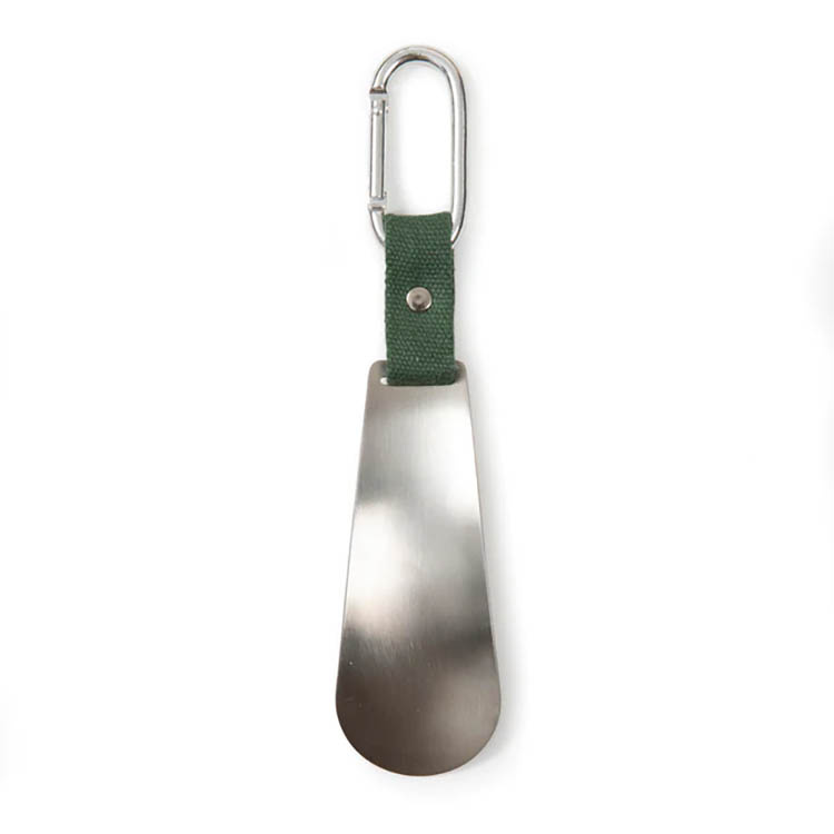 Karbiinihaalla varustettu kenkälusikka on sekä helppokäyttöinen että kestävä, ja se on helppo pitää mukana. Valmistettu polyesterikankaasta ja siinä on ruostumattomasta teräksestä ja alumiiniseoksesta valmistettu karbiinihaka.
