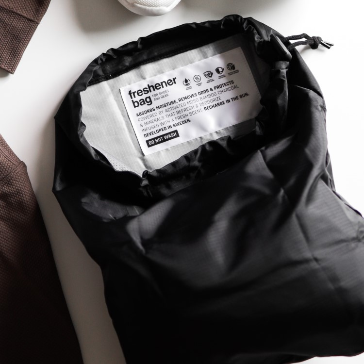 SmellWell Freshner on kosteutta ja hajuja imevä kenkäpussi, joka vähentää kengistä syntyviä pahoja hajuja. Laita kengät kenkäpussiin heti treenin jälkeen, niin pussi auttaa pitämään kenkäsi raikkaina aina seuraavaan treeniin asti.