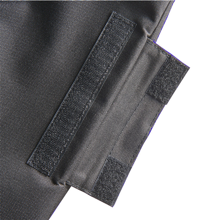 Säilytyslaatikon sivuilla on useita taskuja ja lokeroita pienemmille esineille. Yhdellä lyhyellä sivulla on iso tarranauhallinen tasku. Vastakkaisella puolella on kaksi pienempää vetoketjulla suljettavaa taskua. Takana on pitkä vetoketjullinen tasku ja edessä neljä pientä läpinäkyvää verkkotaskua.