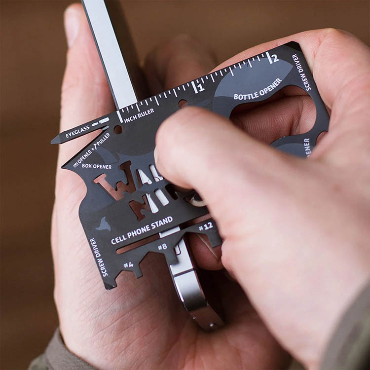 Wallet Ninja on kätevä kortin kokoinen monitoimityökalu, jossa on 18 eri toimintoa. Tarvitsetpa sitten pikakorjausta, pullon avaamista tai jonkin asian mittaamista viivoittimella, tässä työkalussa on kaikki tarvitsemasi. Kompaktin, kortin kokoisen designin ansiosta monitoimityökalu on myös helppo ottaa mukaan minne tahansa. Wallet Ninja on valmistettu lämpökäsitellystä teräksestä.