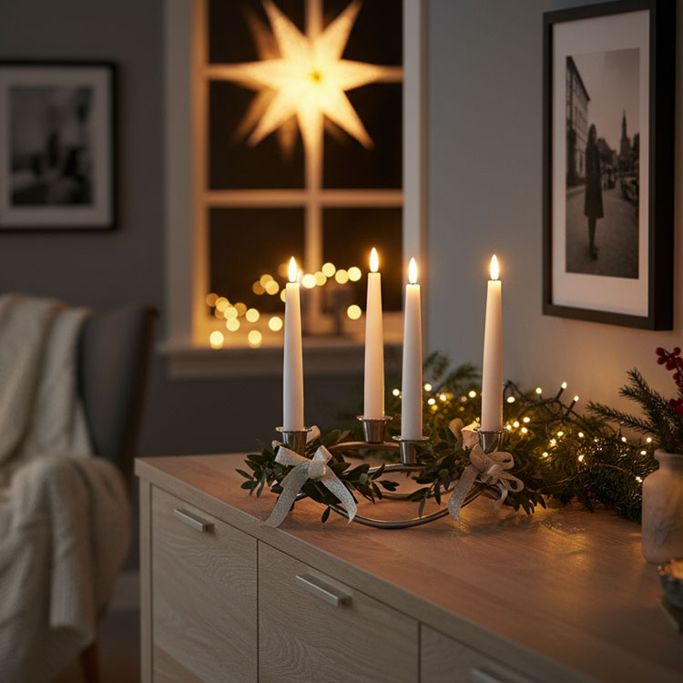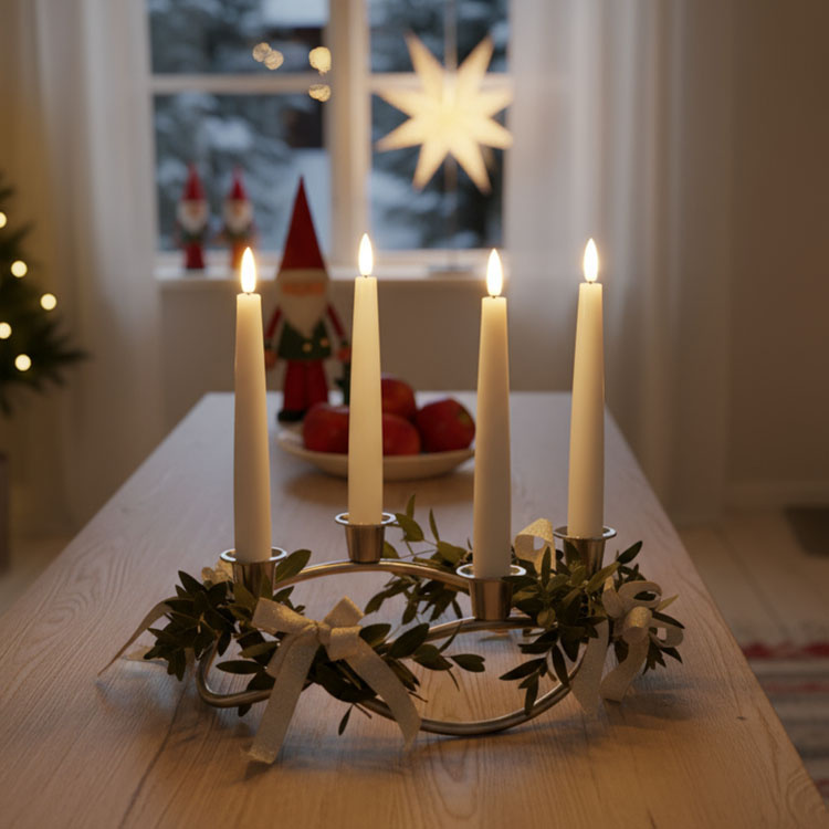 Kynttilät toimivat 3 kpl AAA-paristoilla (eivät sisälly). 20 cm korkeat kynttilät tarvitsevat 1 kpl AAA-pariston kynttilää kohden. 28,5 cm korkeat kynttilät käyttävät 2 kpl AAA-paristoa kynttilää kohden.