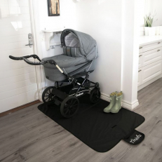 Kun tulet sisään lastenvaunujen kanssa talvisaikaan, täynnä lunta, hiekkaa tai sadevesiä, sijoitat vain lastenvaunut lattiansuojalle. Lattiansuoja on suunniteltu hitaasti imeytymään kosteus, joten lattia pysyy kuivana. Kuitujen on tarkoitus imeä kosteus hitaasti, mikä estää lian ja kosteuden läpäisyn. Kosteus haihtuu luonnollisesti ajan myötä, mikä tekee suojasta täydellisen eteiseen tai sisäänkäynnille.Kevyt ja taitettava