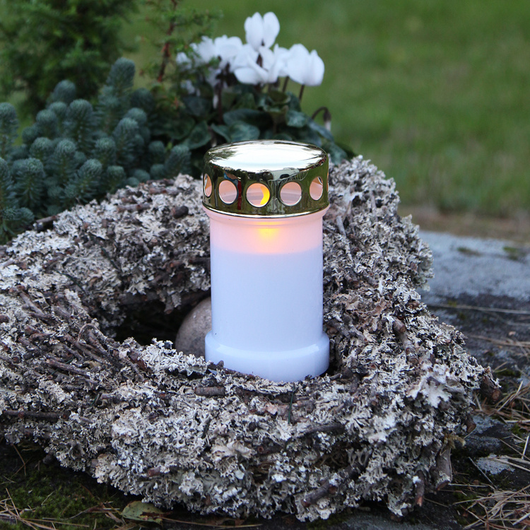 Paristokäyttöisessä hautakynttilässä on lämmin, keltainen hehkuva valo ja se voidaan asettaa haudalle tai muistolehtoon. Hautakynttilän tehokas LED-valo loistaa jopa 1000 tuntia yhdellä paristolla.