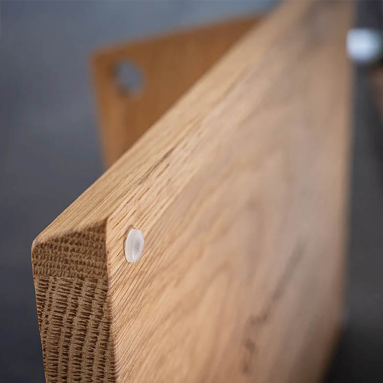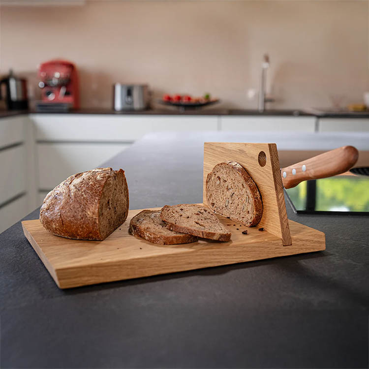 Jokaisessa Mühlenbrettissä on ainutlaatuinen syy ja värisävy luonnollisen puumateriaalin ansiosta. Leikkuulauta on valmistettu huolellisesti valitusta puusta, joka antaa kestävän pinnan ja lämpimän, elävän tunnelman. Se käsitellään elintarviketurvallisella pellavaöljyllä, joka suojaa pintaa ja tuo esiin puun luonnollisen ilmeen.Leikkuulauta integroitu veitsiteline
