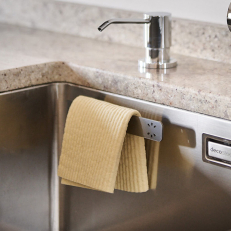 Leveys 150 mm, korkeus 50 mm ja syvyys vain 25 mm tekevät pidikestä kompaktin ja se vie vain vähän tilaa – samalla ise pitäen rätin käden ulottuvilla suoraan tiskialtaassa. Ilmava sijoittaminen tekee rätistä nopeammin kuivuvan, mikä vähentää bakteerien muodostumisen riskiä.Kestäviä ja biologisesti hajoavia tiskirättejä
