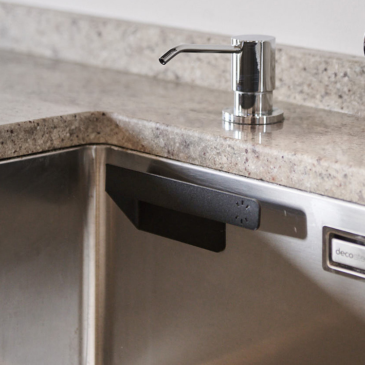 Tiskirättipidike kiinnitetään helposti mukana tulevalla magneettilla – täydellinen ruostumattoman teräksen tiskialtaan sisäpuolelle. Pysyvämpää kiinnitystä varten mukana tulee myös kaksipuolinen teippi, joka kiinnittyy helposti tasaisille pinnoille.Kompakti ja tyylikäs muotoilu
