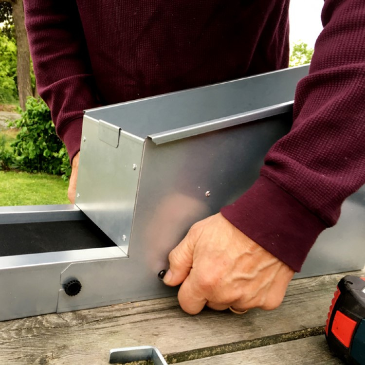 Marjojanpuhdistajan kokoamiseen ei tarvita mitään työkaluja. Tarvitset kuitenkin pölynimuriin ja ruuvimeisselin, jotta voit käynnistää sen. Saatavilla on myös hyvä olla 10 litran ämpäri, jotta puhdistettujen marjojen kerääminen on helpompaa. Ripusta 10 litran ämpäri nhihnan päässä oleviin loviin, niin puhdistetut marjat pudoavat suoraan ämpäriin.