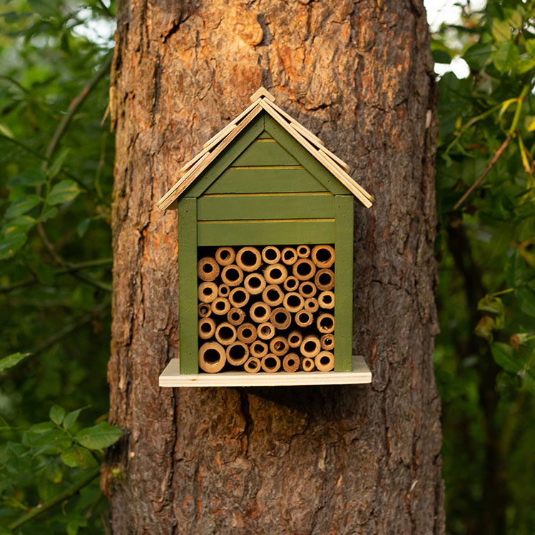 Mehiläishotellin avulla arvokkaat mehiläiset saavat turvallisen asuinpaikan. Hotellissa on tilaa useille pörrääville vieraille ja se on helppo asentaa puutarhaan tai talon kulmaan.