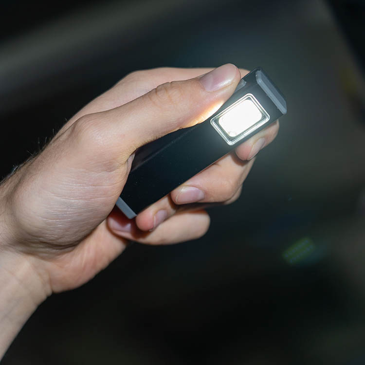 Sisäänrakennettu 4,5 W COB-LED-lamppu tuottaa laajan ja tasaisen valotehon, joten se soveltuu työskentelyyn ahtaissa tiloissa tai korjaustöihin, joissa hyvä näkyvyys on tärkeää. Kirkkaan ja tasaisen valaistuksen ansiosta lamppu sopii myös iltakävelyille. Kompaktin kokoon verrattuna minilamppu tuottaa vaikuttavan valovirran, jopa 500 lumenia kirkkaimmassa valotilassa.Monet kiinnitysmahdollisuudet magneetin & puristimen avulla