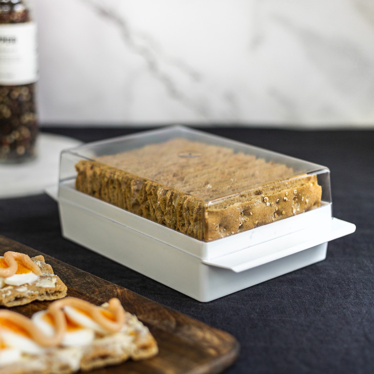 Näkkileivät pysyvät tuoreina ja herkullisina näkkileipärasiassa. Kaappeihin ei leviä muruja ja kutsumattomat pienet hyönteiset eivät pääse käsiksi herkkuihin.