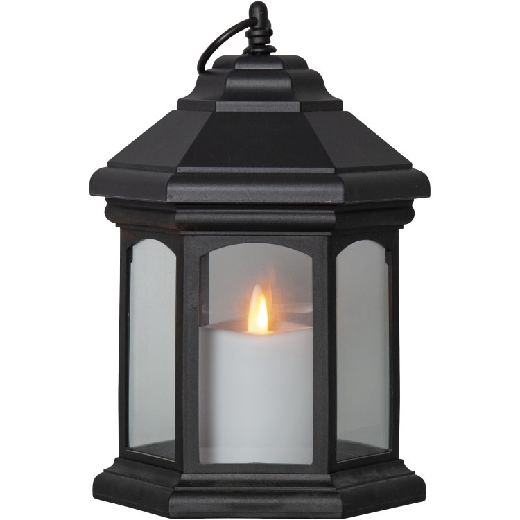 Energiatehokkaassa LED-valaisimessa on 18 diodia. Diodien valo tuottaa eloisan ja realistisen liekin, joka hehkuu lämpimän valkoisena.Lyhty puutarhaan, parvekkeelle ja terassille