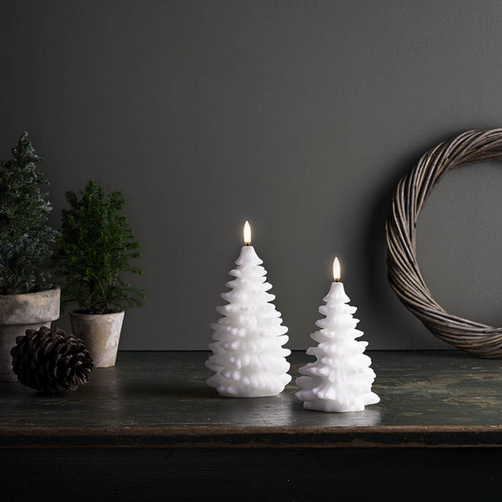 Ensiluokkainen LED-parafiinikuusi, jossa on realistinen 3D-liekki, joka liekehtii elävästi. Yli 400 tuntia kestävien paristojen ja sisäänrakennetun ajastimen ansiosta kuusikynttilä tarjoaa ratkaisun, joka on sekä energiatehokas että käyttäjäystävällinen. Aseta ajastin ja nauti valon rauhallisesta hehkusta yö toisensa jälkeen ilman, että sinun tarvitsee huolehtia valon loppuun palamisesta tai sen sammuttamisesta.