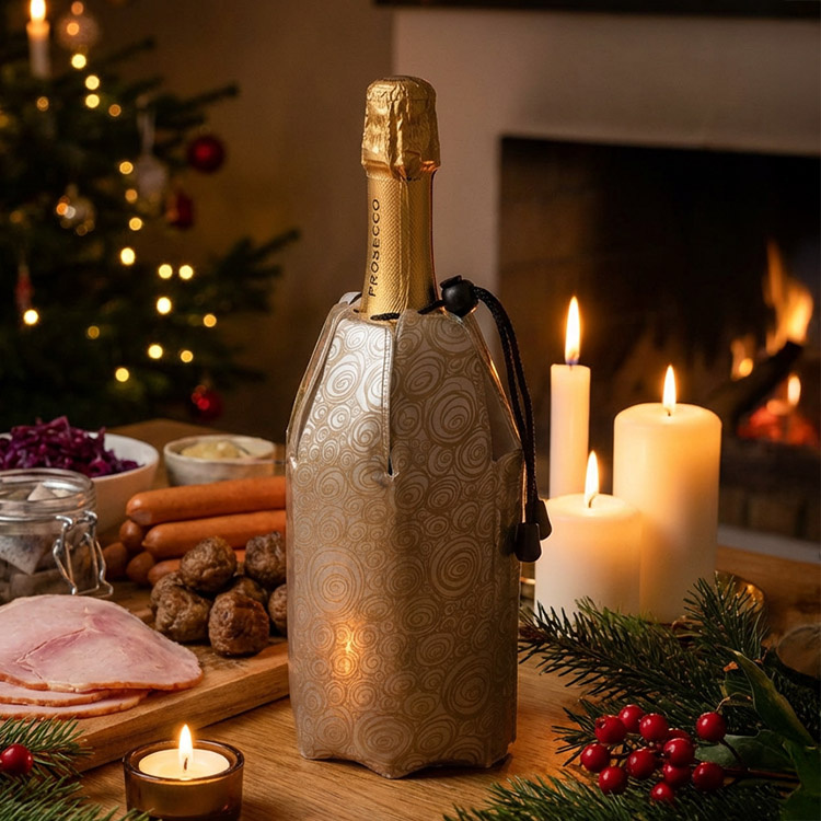 Uudelleenkäytettävällä pullonjäähdyttimellä voi pitää viinin kylmänä piknikillä tai jäähdyttää nopeasti jääkaappiin unohtuneen kuplajuoman. Pullonjäähdytin jäähdyttää tehokkaasti koko pullon mitalta. Pullo on jäähdytetty 15 minuutissa.