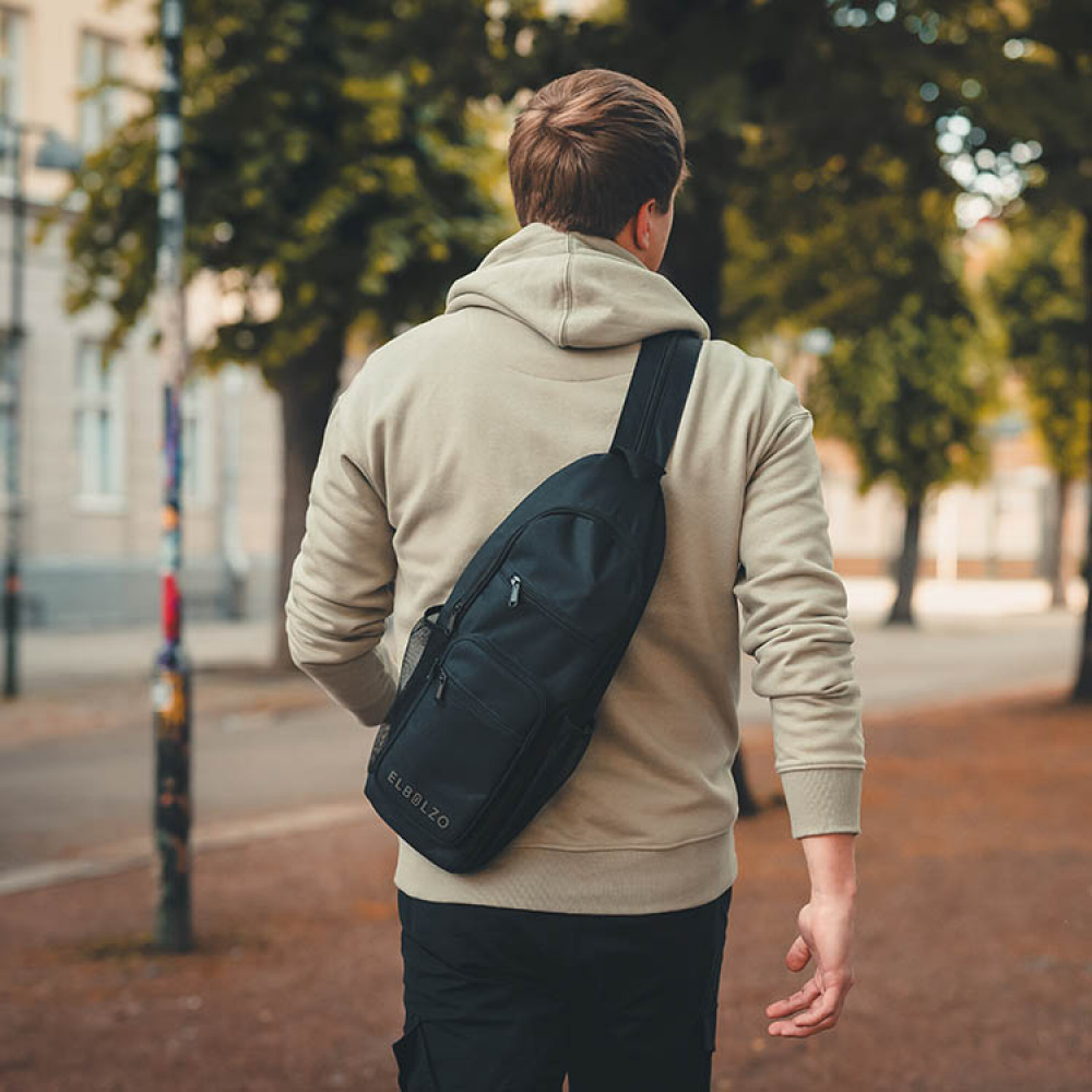 ELBOLZO on varustettu suurella sisätaskulla ja kolmella vetoketjullisella ulkotaskulla esimerkiksi kännykälle, lompakolle ja muille pienille tavaroille. Lisäksi siinä on kaksi ulkotaskua, jotka sopivat täydellisesti tarvikkeille, jotka haluat pitää helposti saatavilla. Pehmustettu selkäosa tarjoaa lisämukavuutta ja toimii selkää suojaavana kerroksena. Kaksi irrotettavaa olkahihnaa on helppo säätää ja ne antavat lisätukea, kun laukkua käytetään reppuna.Tee näin