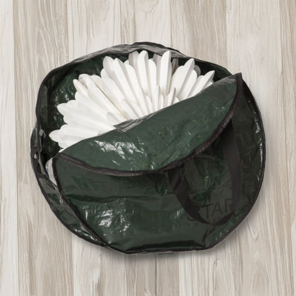 Säilytyspussi suojaa koristeita pölyltä ja vaurioilta, joten ne säilyvät kauniina seuraavaan jouluun asti. Pyöreä muoto sopii erityisesti kransseille ja muille koristeille, joita voi muuten olla vaikea säilyttää.Tekniset tiedot