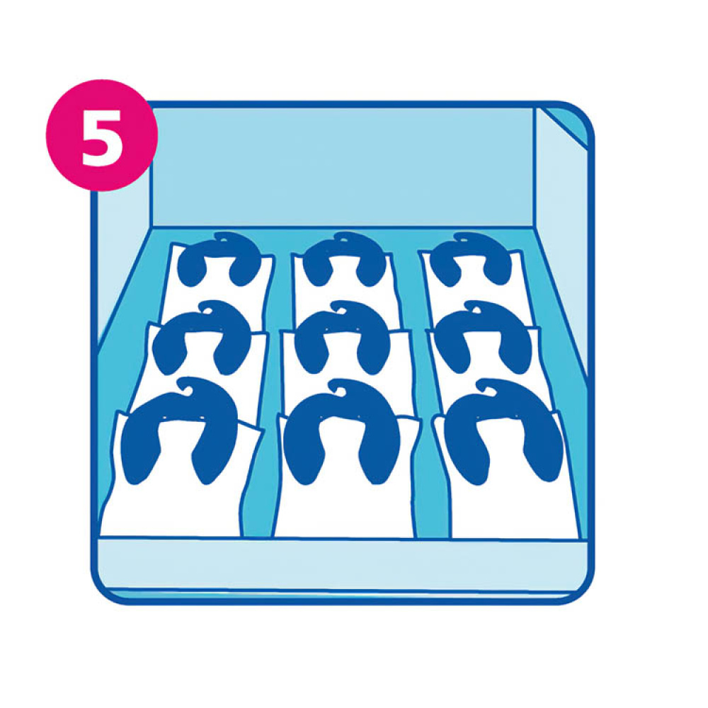 1. Pujota sukat Sockstar-klipsin vasempaan aukkoon. Aseta ne sitten oikeaan aukkoon ja vedä ne tiukasti kiinni.2. Aseta yhteen kiinniteyt sukat pyykkipussiin.