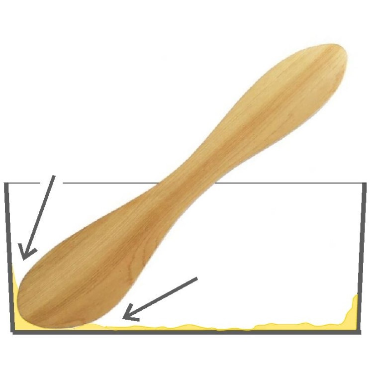 GåS-voiveitsen avulla voin kaapiminen 4-reunaisesta voi- tai margariinirasiasta onnistuu helpommin. Voiveitsen suorat reunat yltävät tasaisiin reunoihin ja kulmiin paremmin kuin tavallisen voiveitsen reunat.