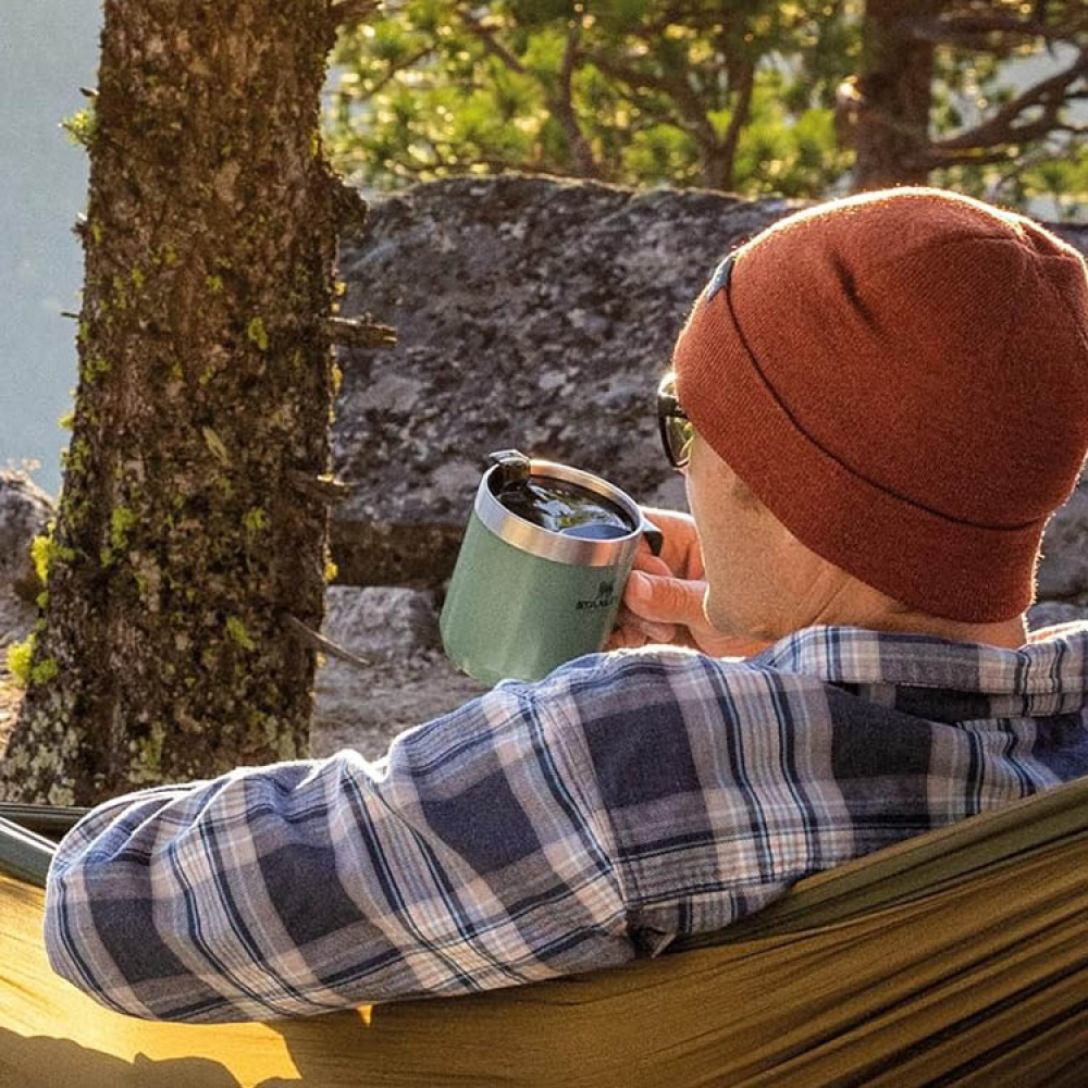 Stanley-termosmuki avattavalla kannella. Täydellinen retkeilyyn, nuotion äärellä istumiseen tai aamukahvin nauttimiseen matkalla töihin. Tyhjiöeristetyn kaksoisseinämän ansiosta muki säilyttää tehokkaasti lämpöä ja kylmää, joten voit nauttia lempijuomasi juuri niin kuin haluat. Termosmuki on astianpesukoneen kestävä ja BPA-vapaa.
