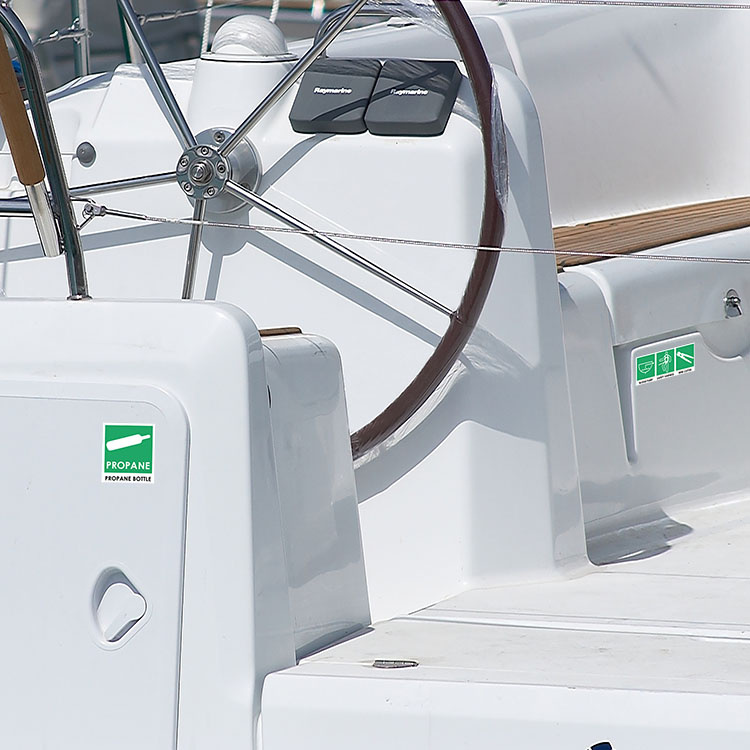 Itsekiinnittyvien turvatarrojen avulla voit osoittaa selvästi, missä kohtaa veneessä on tärkeät ja tarpeelliset varusteet sijaitsevat. Sekä moottori- että purjeveneissä käytettäviksi suunnitellut itseliimautuvat turvatarrat merkitsevät kohteet selkeästi niiden paikkoihin ja itsekiinnittyvään yleiskarttaan.