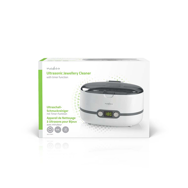 Nedis ultraläänipesuri koruille puhdistaa helposti sormukset, korvakorut, kaulaketjut ja muut pienet esineet vain vedellä ja ääni-aalloilla. Laite käyttää synnin ääni-aaltoja 43 kHz päästäkseen vaikeasti saavutettaviin osiin ja poistaakseen sitkeää likaa. Kirkas LED-näyttö digitaalinen ajastin antaa sinun mukauttaa puhdistusaikaa tarpeen mukaan, 1,5 - 8 minuuttiin. Käytännöllinen sisäkorihyvin yksinkertaistaa esineiden upottamista ja nostamista. Puhdistus tapahtuu tilavassa 600 ml:n säiliössä.