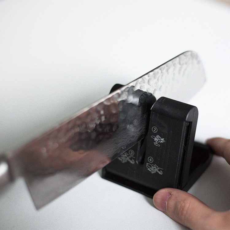 Helppokäyttöisen veitsenteroittimen hiomakivi kestää erittäin hyvin käyttöä. Pakkaukseen sisältyy selkeät ohjeet veitsen teroittamiseen ja uuden särmän hiomiseen.
