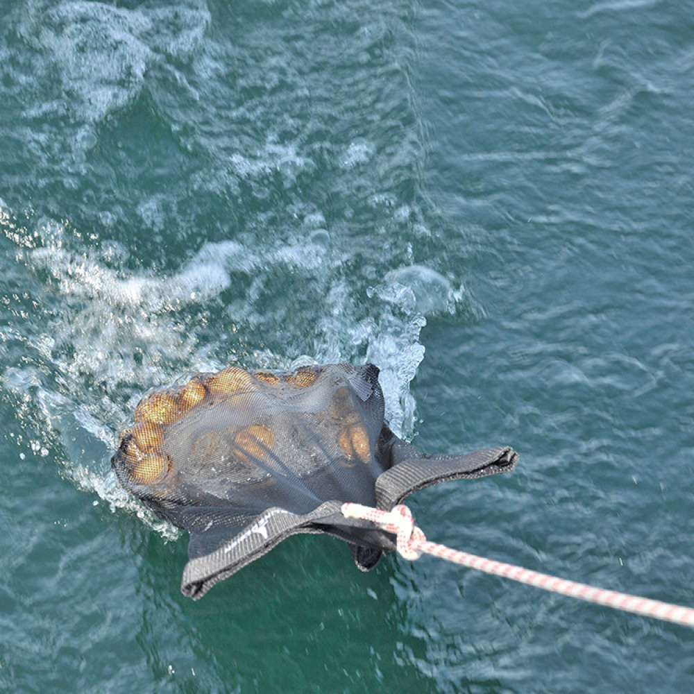 Verkkopussissa voi sekä pestä perunat että jäähdyttää juomat veneillessä.