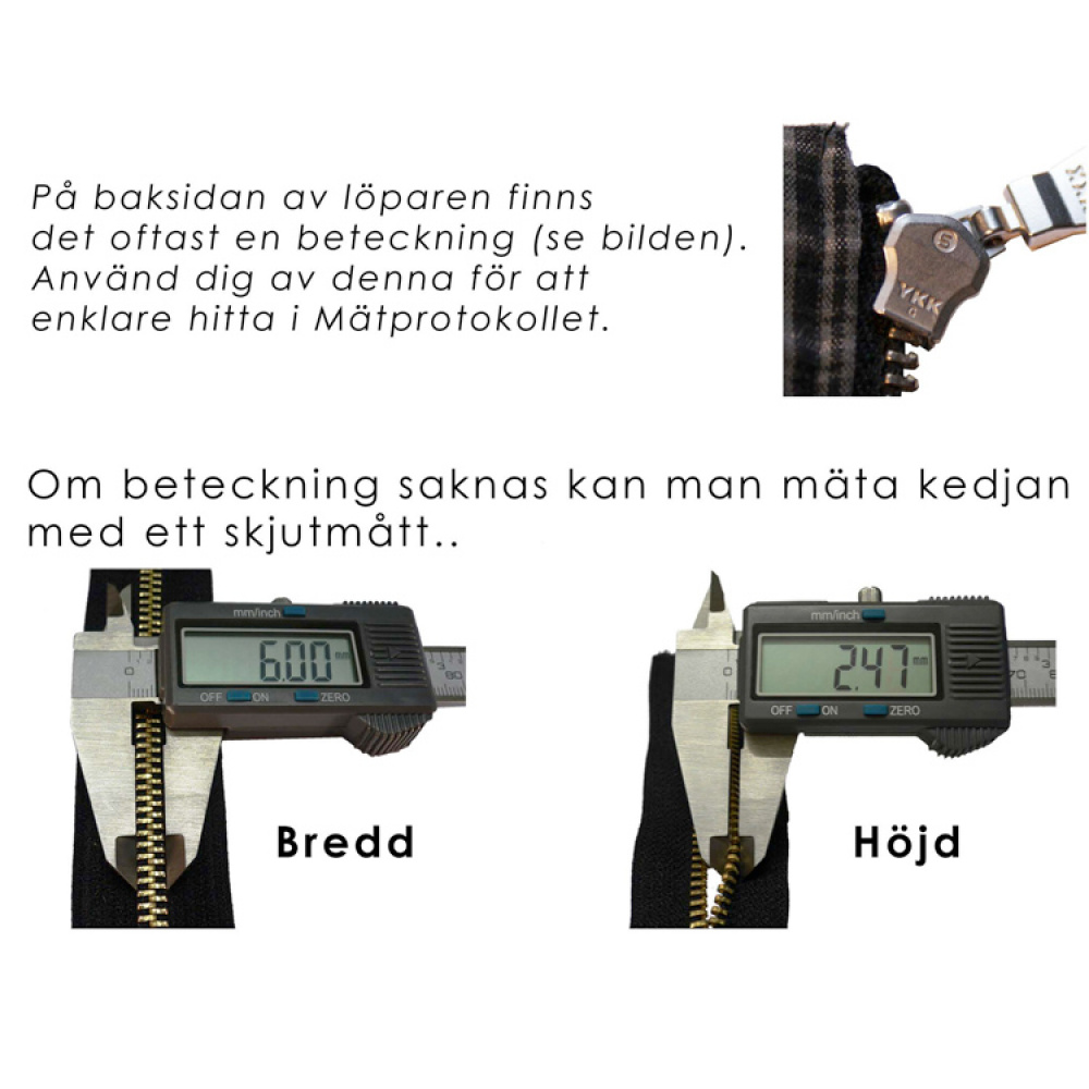 2. Mittaa vetoketju. Käytä kuvia apuna koon määrittämiseen.